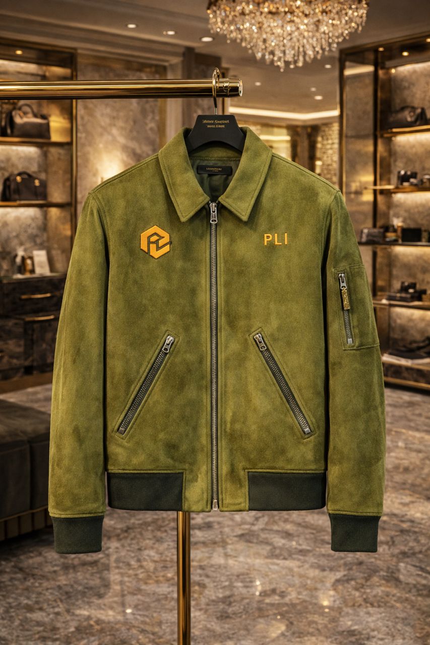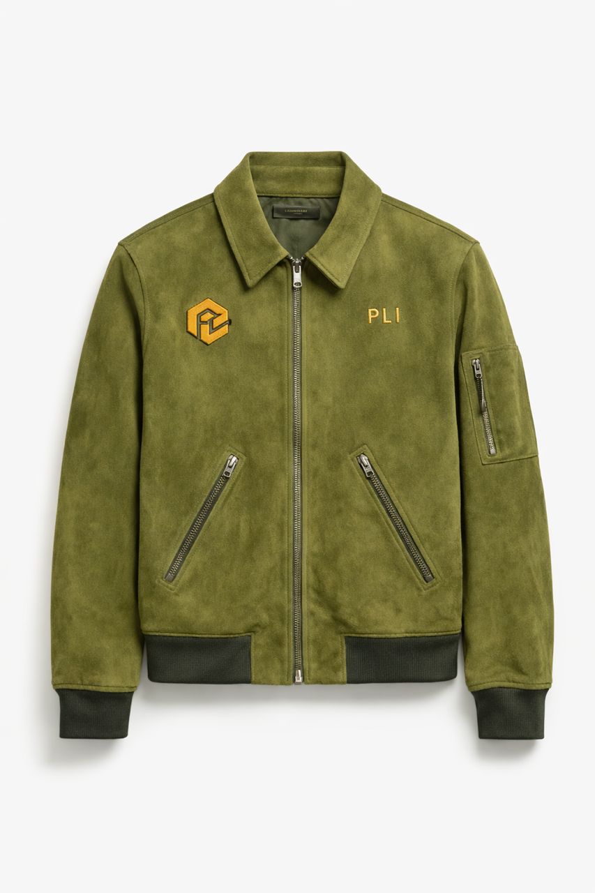 Premium soft-touch suede. Tailored structured fit. Polished metal zipper. Ribbed cuffs & waistband. Clean back for timeless elegance.